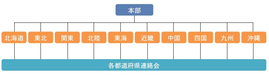 本部のもとに支部を設置し、支部のもとに都道府県連絡会を置く。