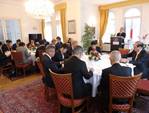 チェコでは首都プラハで在チェコ大使の公邸にて、嶋﨑大使や書記官の方々とお食事を共にしながら、チェコの最近の政治経済情勢についてレクチャーを受けました。 プラハ経済大学では政治学科のドヴォジャーコヴァー教授、さらに現地新聞社エコノミア社のエール氏から、 チェコの昨今の右翼ポピュリスト政権の特徴について様々な情報を頂戴しました。