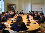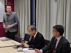 *藤村和広大使より、デジタル化とカーボンニュートラルについて、この国の経済は大きく2つの柱があり、キーワードとして一つ目はDX、二つ目はGX。DXについては官・民・学が一体となり、先進的なデジタル化を展開している。店で買い物をする際、現金で支払う経験はほとんどなく、クレジットカードかスマホのアプリで支払います。医療も含めて様々な行政サービスがデジタル化されており、最近はパスポートのデジタル化も試験的に始まったところです。カーボンニュートラル、GXについては先進的で、2035年までにカーボンニュートラルを実現するために頑張っています。まず、石炭火力発電所を減らし2029年までに廃止する計画です。最近は水素などに力を入れている。フィンランド経済はDX,GXに特徴づけられています。また、スタートアップ、若者の起業に政府が力強く応援しています。女性活躍はすぐに実感されると思いますが、ジェンダーギャップ指数は世界3位です。国会は200人中92人が女性で、閣僚19人中12人が女性です。経済界でも取締役の3割が女性で、これでも足りないと4割を目指すと言われていると述べた。その後意見交換が行なわれた。