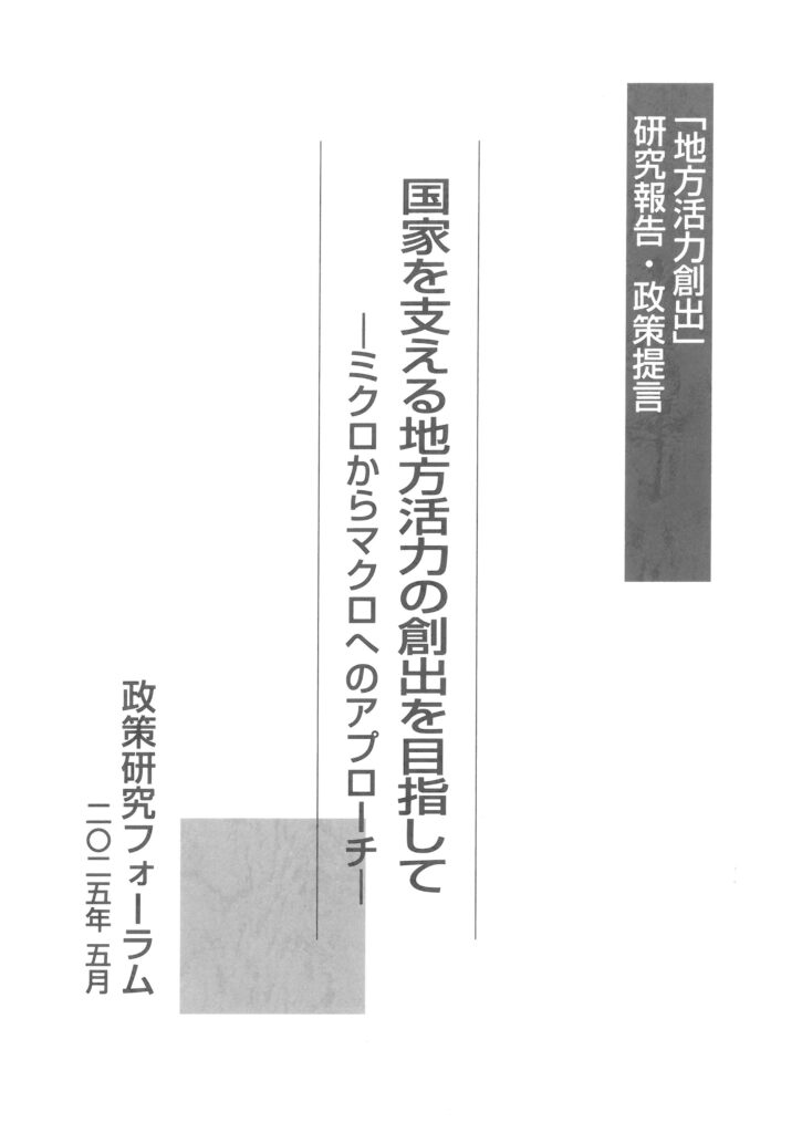 (略称「「地方活力創出」研究委員会」)研究報告・政策提言